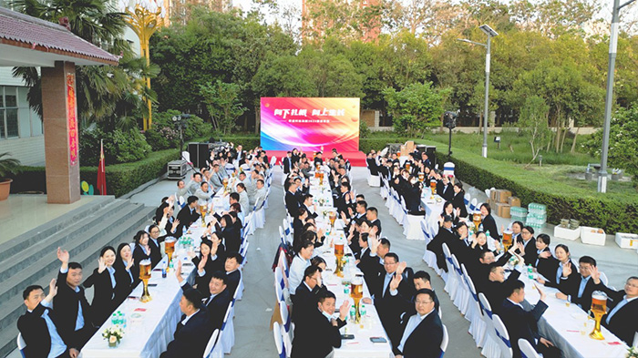 隨著一陣陣歡呼聲,家宴正式拉開序幕,董事長楚科奇及集團管理層共同登臺祝酒,為這個美好的歡聚時刻,與所有家人舉杯慶?!,F場華燈璀璨,笙歌高揚,家人滿座,笑語滿堂。
