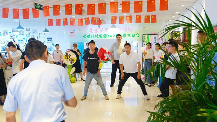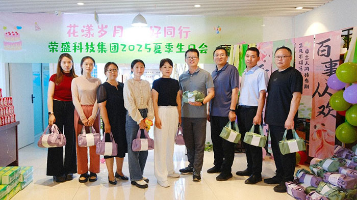 碧荷映日聽蛙語,暑風半卷夏意長。在這草木蔥蘢、生機盎然的盛夏時節,為打造溫暖融洽的工作氛圍與環境,讓每一位員工真切體會到榮盛大家庭的溫情,助力企業凝聚蓬勃向心力,7月5日下午,榮盛科技集團舉辦「花漾歲月 美好同行——2025 年夏季員工生日會」,來自各部門的60余位壽星和榮盛家人們齊聚一堂,共同度過這溫馨時光。