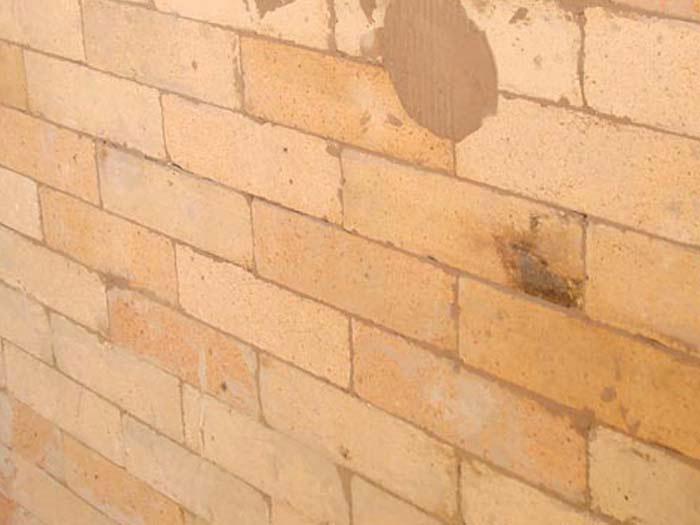 粘土磚T4屬于硅酸鋁材料的粘土質(zhì)制品,其Al2O3含量為30%~40%。Fe2O3含量小于2.0~2.5%。配料中熟料為65~85%,結(jié)合粘土為35~15%。將粉碎的結(jié)合粘土和磨細(xì)的熟料混磨,再與顆粒熟料一起配制成半干泥料,高壓成型,在約1400℃下燒成,性能較好。粘土磚在高溫下呈弱酸性,抗堿性熔渣侵蝕的能力稍差,但隨Al2O3含量提高而增強(qiáng)。